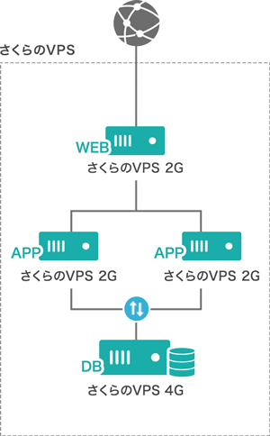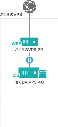 プランごとによる接続制限がないため、Webサーバーを「さくらのVPS 2G」、DBサーバーを「さくらのVPS SSD 4G」といった組み合わせが可能です。